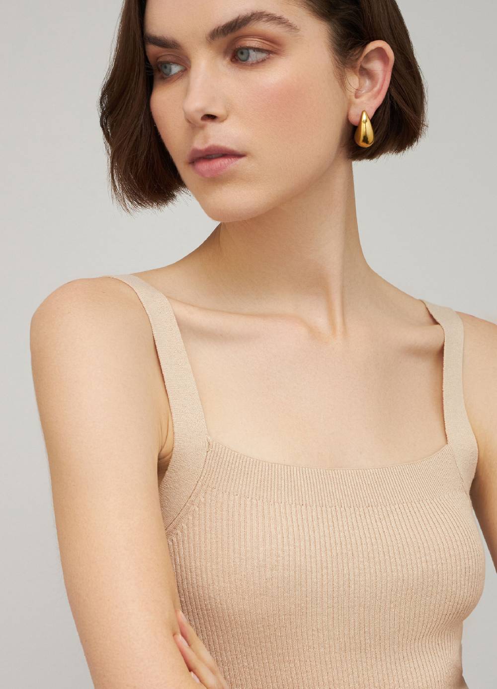 Canotta in cotone e seta con lavorazione a costine, spalline larghe e scollo squadrato.