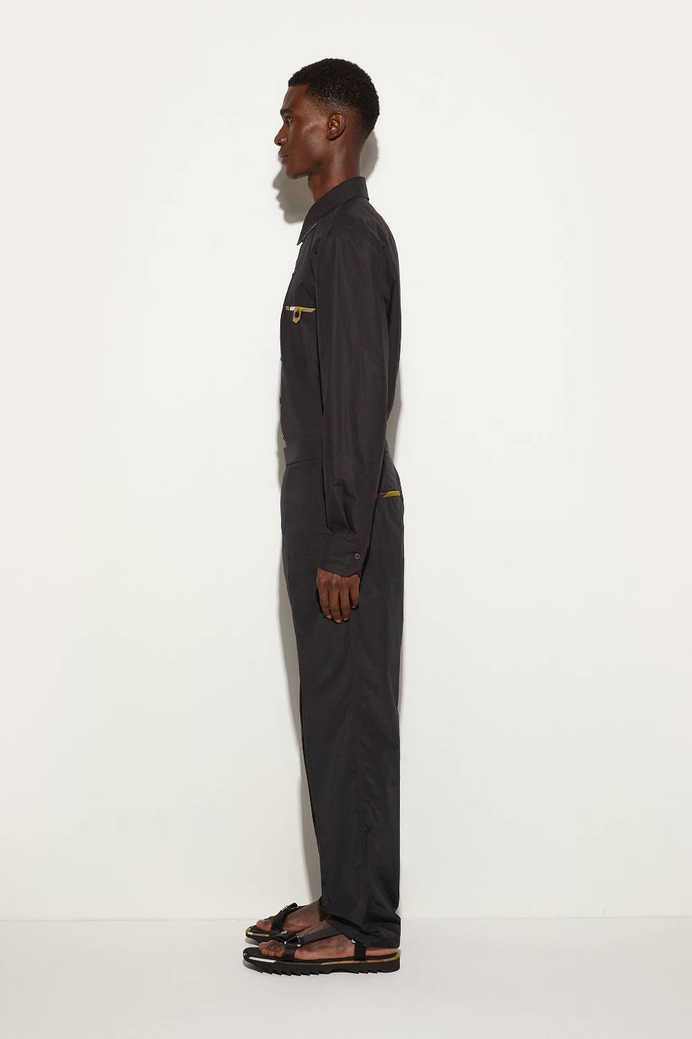 La maison Pucci aggiunge nuove sfumature e contrasti al più classico dei design: questa camicia nera a maniche lunghe in fresco popeline di cotone è illuminata da finiture con stampa verde e marrone sulla tasca.